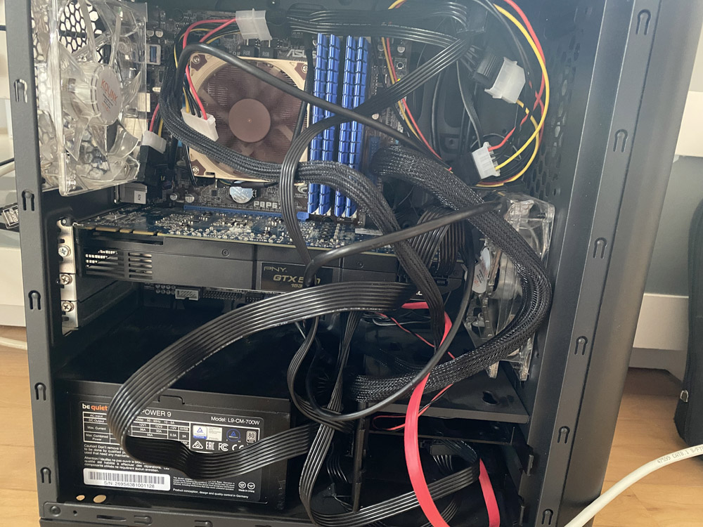 Das Gehäuse ist etwas klein und ich hatte von Anfang an Probleme die ganzen Kabel unterzubringen.